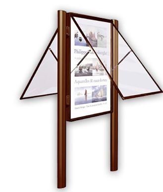 - Integrated hinge door or raising door using gas struts, replaceable and reversible without tools and without having to remove the poster display.
