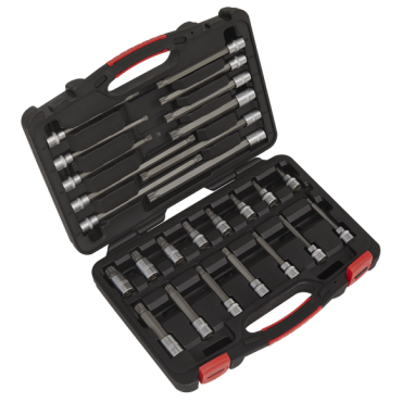 Contents: 3/8"Sq Drive Spline Socket Bits; Length 48mm - M5, M6, M8, M9, M10, M12, M14, M16, Length 93mm - M5, M6, M8, M9, M10, M12, M14, Length 140mm - M5, M6, M8, M9, M10, M12, M14, Length 200mm - M8, M10, M12, M14