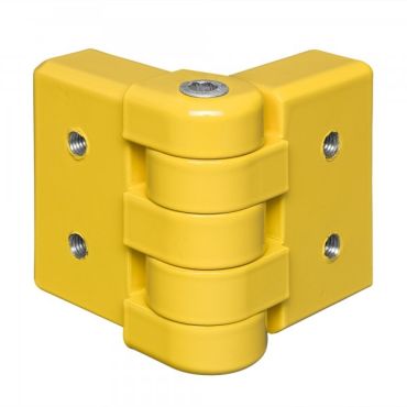 The BLACK BULL Low Level Guard Rails aluminium hinge in powder-coated yellow finish delivers professional-grade high-visibility connection technology for efficient and effective low-level protection systems in demanding industrial environments. This premium yellow aluminium hinge component combines innovative fastening technology with superior build quality and maximum visibility, providing crucial high-visibility connection solutions for protecting property, machinery, and plant from damage by moving traffic across applications requiring highly visible low-level guard rail configurations and corner protection systems.