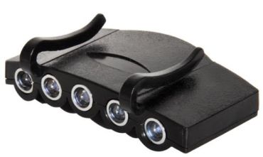 Lightweight LED lamp securely mounts onto the peak of the Hardcap. High light output and compact sizing plus 4 power settings: 1xLED, 3xLED, 5xLED, Flash/Hazard.