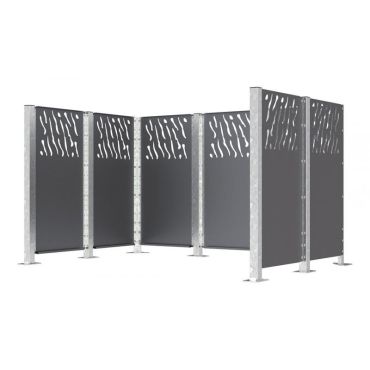Decorative fence and wheelie bin stores in steel (Venice Cladding)