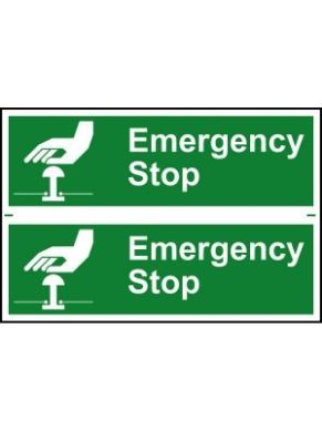 - 300 x 100 PVC emergency stop sign displaying an emergency button.