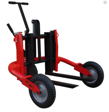 - This Mini Rough Terrain Pallet Truck has forks which tilt when raised.