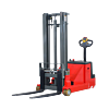 A pedestrian counterbalance stacker is a battery-powered, walk-behind lifting machine that uses an integrated counterweight to balance loads carried on its forks. The operator walks behind the unit, controlling travel, steering, and mast lift via a tiller handle. Unlike a sit-on forklift, there is no cab, no seat, and no overhead guard – the machine is compact enough to operate in confined spaces where a larger vehicle would be impractical.