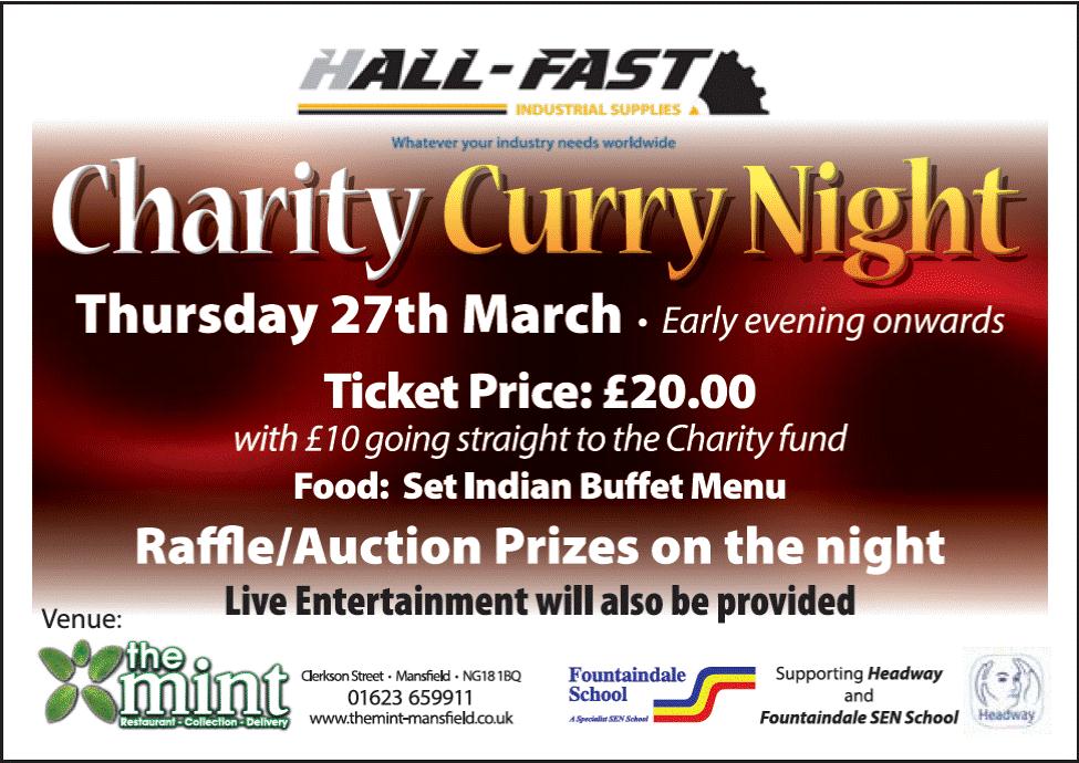 Tickets are selling fast for a charity curry night which has been organised by local industrial supplies firm Hall-Fast to raise money for two worthy causes.