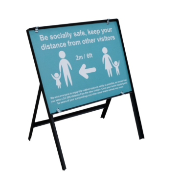 Reinforce important social distancing safety measures with our temporary signs. Provide a constant reminder to visitors on your premises to stay within the 2m/6ft distancing guidelines. Strong and Robust Metal Frame, easy to transport and easy to set up. Ideal for looking for a temporary sign to communicate your social distancing program.