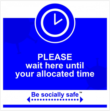 Wait here / allocated time sign, Blue - RPVC - (400 x 400mm)